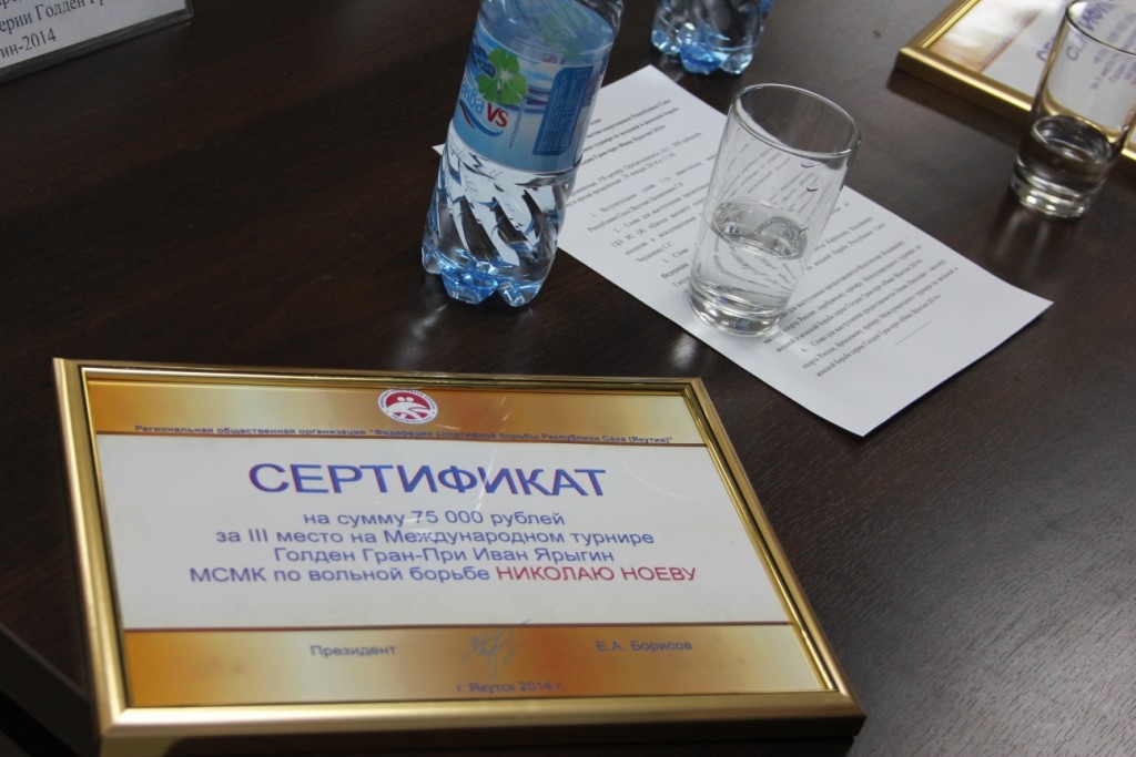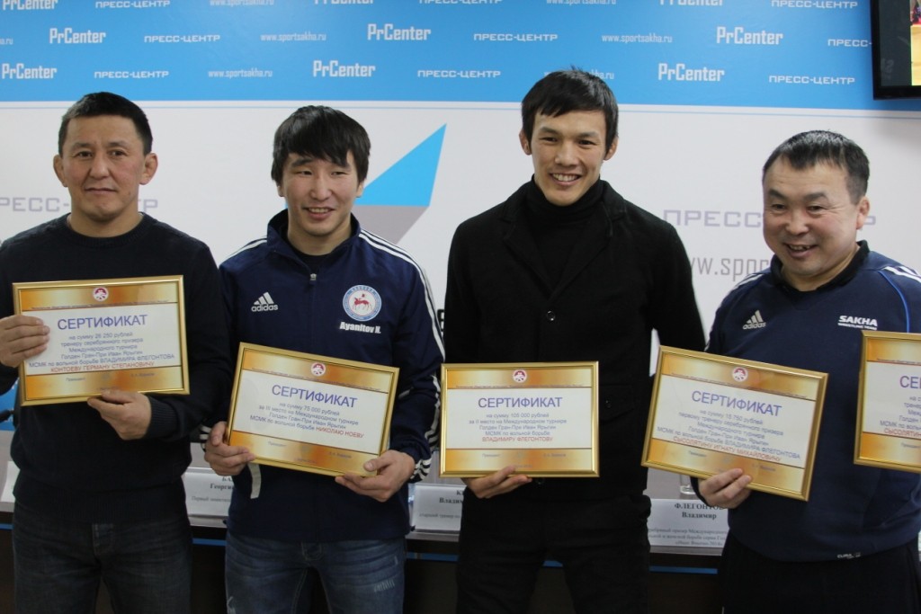 Николай Ноев: «У нас идет упорная подготовка к Чемпионату мира. Впереди большие планы и надежда на победу. Не будем забегать вперед, время покажет». Во время пресс-конференции состоялась церемония награждения призеров и тренеров денежными сертификатами Федерации спортивной борьбы РС(Я).