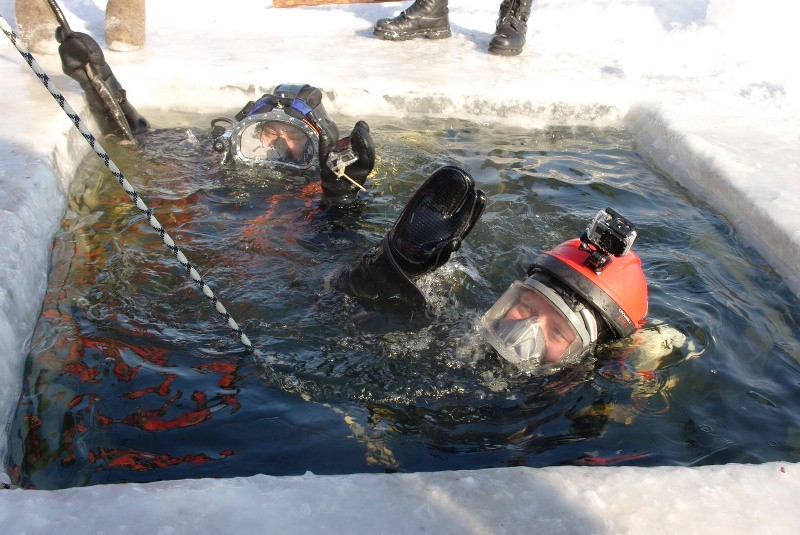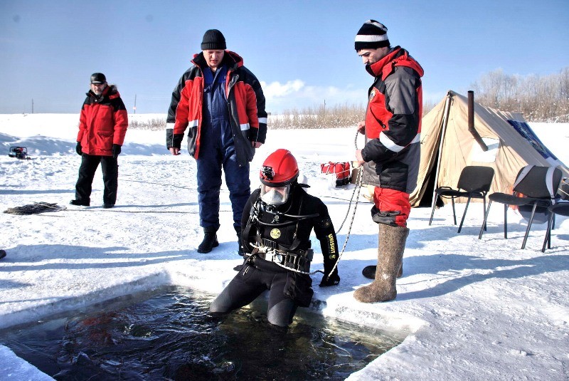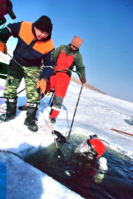 РИГ SAKHAPRESS.RU Готовясь к предстоящему паводку, с 12 марта по 14 марта 2014 года водолазный отряд ГКУ РС(Я) «Служба спасения РС(Я)» под руководством Сергея Соболева руководителя водолазной службы, проводит тренировочные водолазные спуски на реке Лена в районе п. Жатай. Их действия в эти дни детально спланированы: заранее были определены работающие и страхующие водолазы, руководители спусков каждой группы.