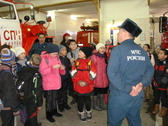 [/caption] Восторженные возгласы ребятишек раздались при виде настоящих боевых машин. Третьеклассники с трепетом прикасались к холодному металлу краснобокой автоцистерны «АЦ-40», внимательно разглядывали содержимое рундуков. Теперь ученики знают, на сколько минут тушения пожара хватает содержимого автоцистерны, где хранится и для чего необходимо пожарно-техническое вооружение. Школьникам продемонстрировали боевку - боевую одежду пожарного, в которую огнеборцы облачаются не больше, чем за двадцать одну секунду. Василий Васильевич и Александр Петрович рассказали о предназначении автолестницы, о том, как проводится спасение людей при помощи подобных машин. Также старший инструктор по вождению пожарной машины – водитель продемонстрировал детям автомобиль быстрого реагирования, предназначенный для доставки к месту пожара или аварии боевого расчета, аварийно-спасательного, пожарно-технического вооружения, тушения очагов загораний в зданиях, автомобилях, оказания первой помощи пострадавшим, а также для проведения аварийно-спасательных работ и разведки при тушении пожаров. Покидая специализированную пожарную часть по тушению крупных пожаров, ребята оживленно делились впечатлениями, было ясно, что среди них много желающих в будущем связать свою судьбу с пожарной охраной. Наверняка, через несколько лет в эти двери войдут крепкие молодые люди в форменной одежде МЧС - сегодняшние третьеклассники, с восторгом разглядывавшие пожарную машину. Пресс-служба ГУ МЧС России по РС(Я)