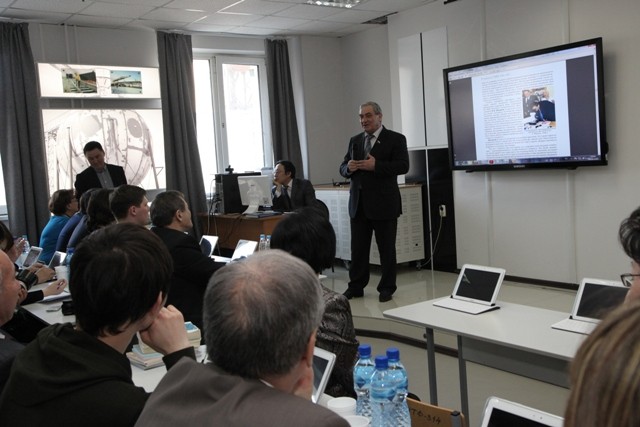 Сенатору была представлена мультимедийная аудитория, которая оборудована современными технологиями и имеет неограниченные возможности для проведения образовательного процесса. «Эта аудитория оборудована техникой компании Самсунг. У нас сложились неплохие отношения с этой компанией и они готовы бесплатно установить еще несколько подобных аудиторий в нашем университете», -- отметила