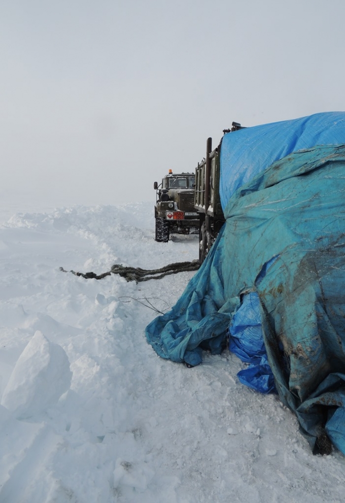 Единственная круглогодичная дорога в нашем районе – Усть-Куйга – Депутатский, но и она в случае непогоды становится тяжелым испытанием для нас водителей. Нештатная ситуация у нас произошла как раз в этом феврале по дороге в Усть-Куйгу, куда мы на двух машинах поехали за топливом из Депутатского. На 114-м км трассы в составе автоколонны попали в снежный плен. Дорогу сильно замело, было невозможно проехать ни вперед, ни назад. Видимость нулевая. По спутниковой связи вышли на начальство, нам сразу предложили эвакуацию. Но мы с коллегой решили не бросать технику и дождаться расчистки дороги. Благо у нас был вода, еда и недельный запас топлива. Через три дня погодная обстановка не улучшилась, и мы все-таки приняли решение эвакуироваться.