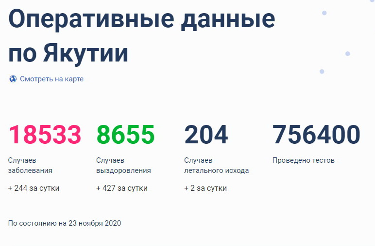 Сегодня оперштаб РС(Я) опубликовал данные, согласно которым в Якутии за сутки скончались два человека, а всего умерших от ковид-19 - 204. Однако федеральный оперштаб приводит совсем другие цифры. А именно, по данным за 23 ноября в Якутии скончались 10 человек за сутки, а всего умерших от коронавируса - 252 человека. Как видим, разница за сутки в 8 человек, и почти в 50 за все время.
