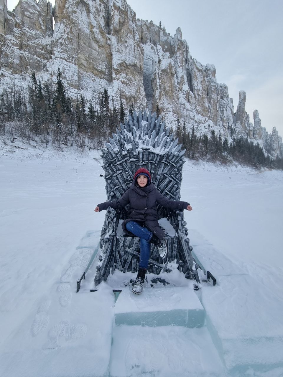 Фанаты «Игр престолов» давно сравнивали «Ленские столбы» со стеной. Они и правда похожие. Конечно же, появление Железного трона было делом времени. Он расположен в ледовом городке, при входе дополнительно за фотосессию платить не нужно. На троне с удовольствием фотографировались как дети, так и пожилые бабушки.