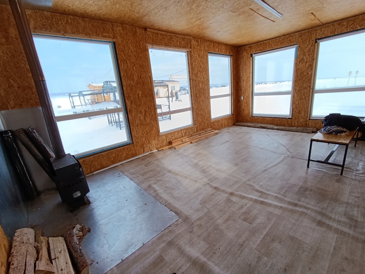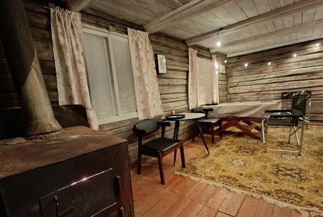 Внутри — настоящий деревенский вайб и гудит печка-буржуйка.