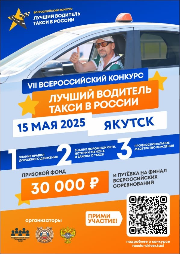 В Республике Саха (Якутия) 15 мая 2025 года пройдет региональный этап VII Всероссийского конкурса «Лучший водитель такси в России». Для победы водителям нужно показать знания ПДД, улиц города и закона о такси. Участники поборются за 30 тысяч рублей и возможность выиграть автомобиль в финале.