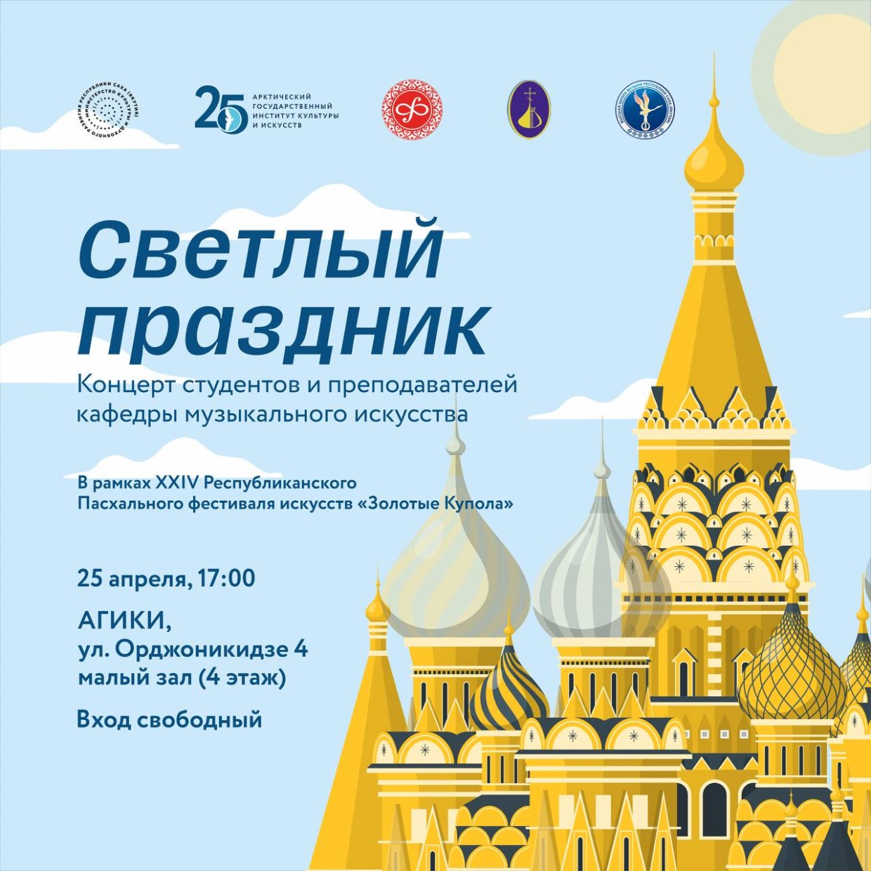 Традиционно в течение пасхальной недели в Якутске на различных творческих площадках проводятся концерты с участием музыкальных коллективов республики. Преподаватели и студенты кафедры музыкального искусства АГИКИ являются постоянными участниками данного торжества.