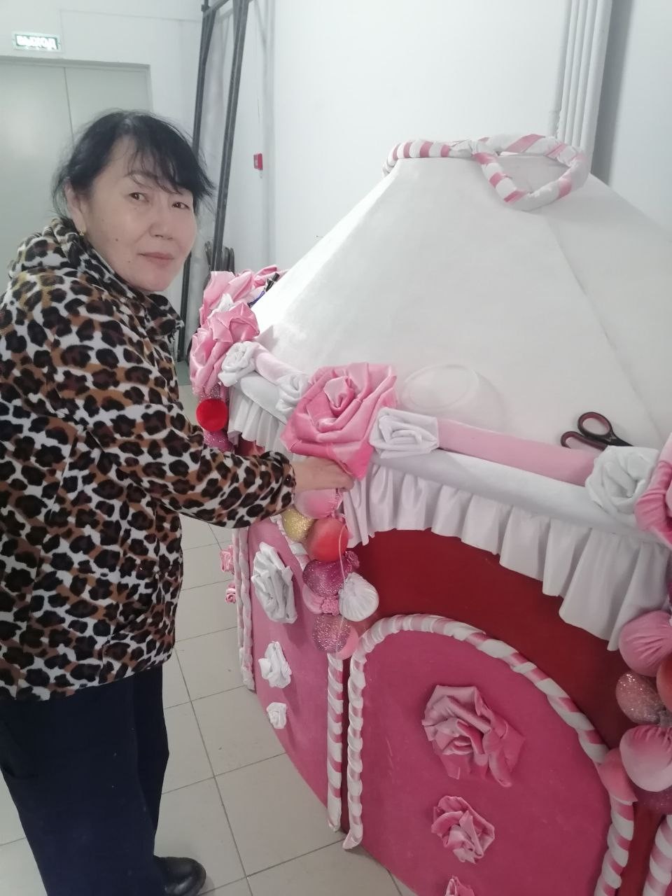 Вообще все театральные выставки раньше проходили через ее руки: они и подписи делали, и клеили, и манекены одевали. Про Туйяру говорят: быстрая. Никогда не скажет: «Нет, я не буду!». Надо было для балета «12 стульев» красить огромные страусиные перья в разные яркие цвета — красила. Надо огромные цветы на грандиозный торт для балета «Щелкунчик» — пожалуйста! Притом из лоскутков.