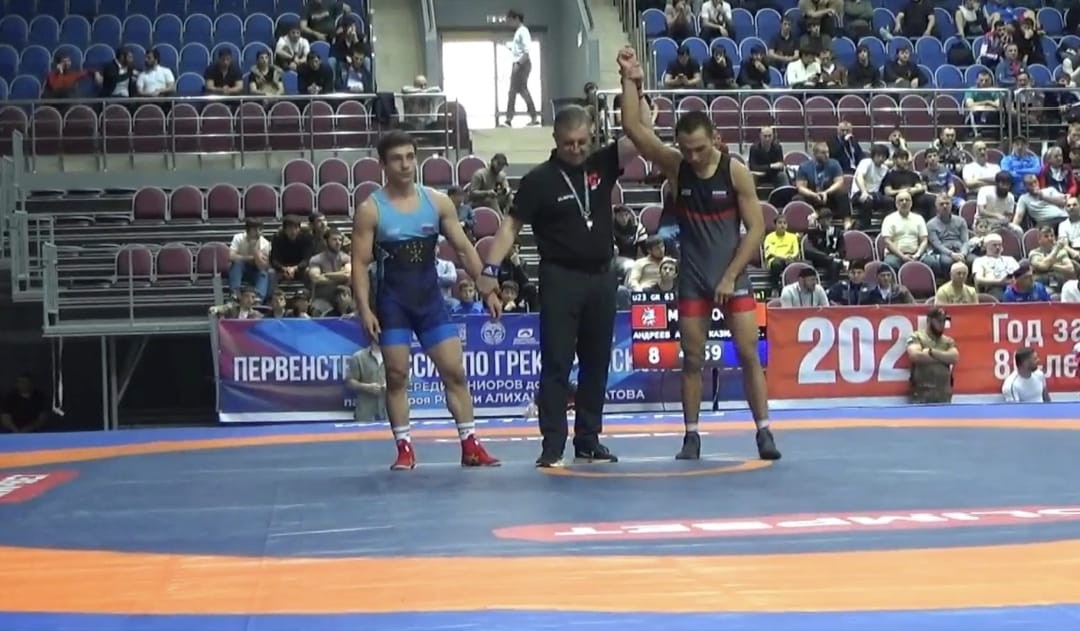 Якутянин боролся в весовой категории до 63 кг (30 участников), где своими бросковыми приемами закончил первую схватку досрочно против Руслан Новрузов (Алтайский край) 11:1. В четвертьфинале Андреев в трудном поединке побеждает призера юниорского первенства страны Артема Ковчишина (Свердловская область) 8:6.