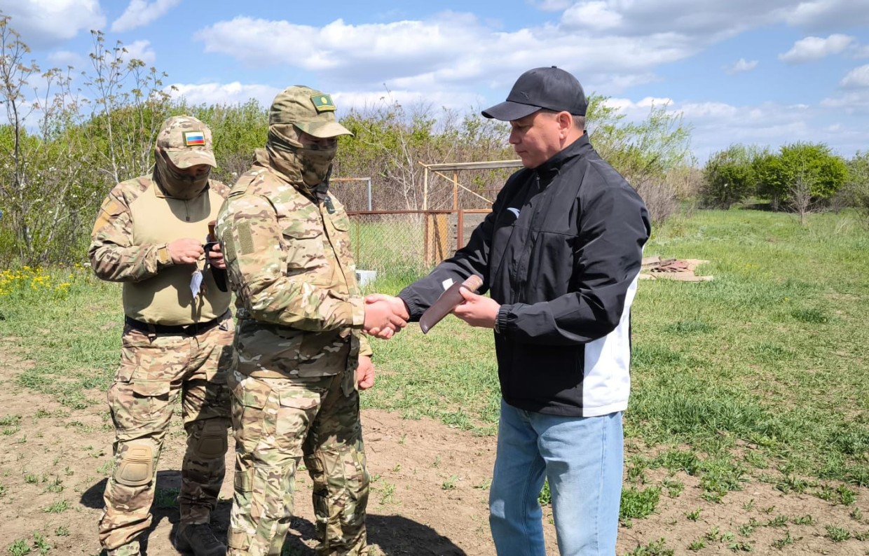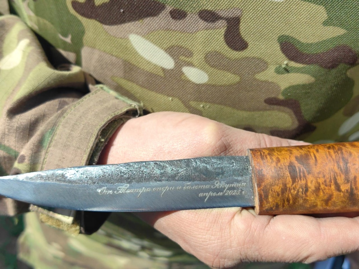 Директор Театра оперы и балета им.Д.К.Сивцева - Суорун Омоллоона Владислав Левочкин вручил нашим защитникам якутские ножи, средства личной гигиены и необходимые в быту вещи, приобретенные на пожертвования работников театра.