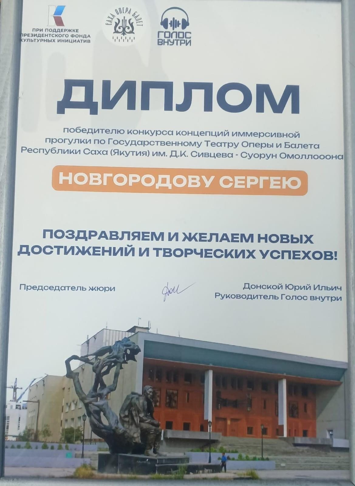 Спектакль-экскурсия реализуется в рамках гранта Президентского фонда культурных инициатив, заявителем-победителем которого стал иммерсивный проект «Голос внутри» (ИП Донской Юрий Ильич)