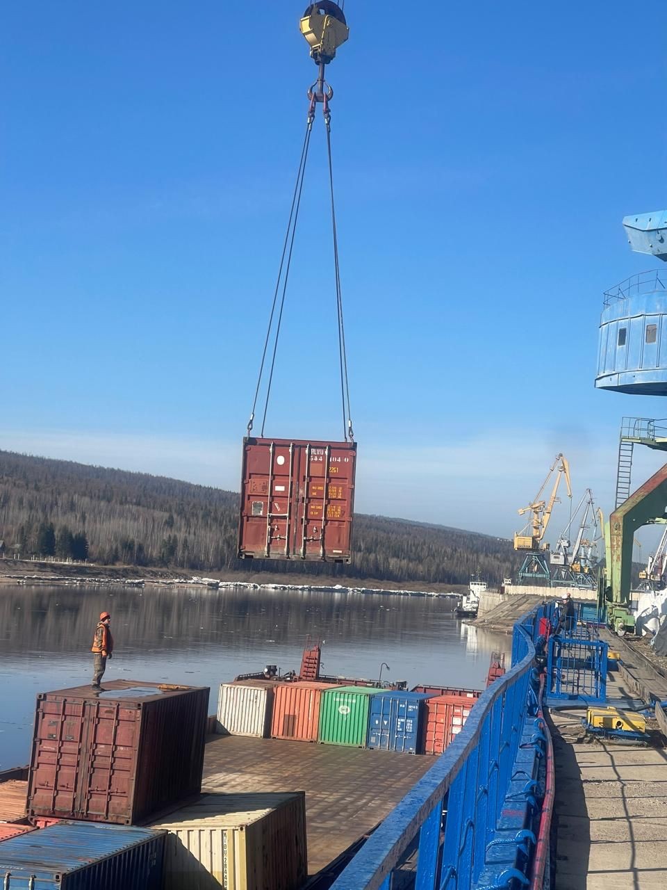 В этом году грузовые операции в грузообразующем пункте Осетрово (город Усть-Кут Иркутской области) начались раньше обычных сроков. Первой под обработку была установлена баржа МП-2580.