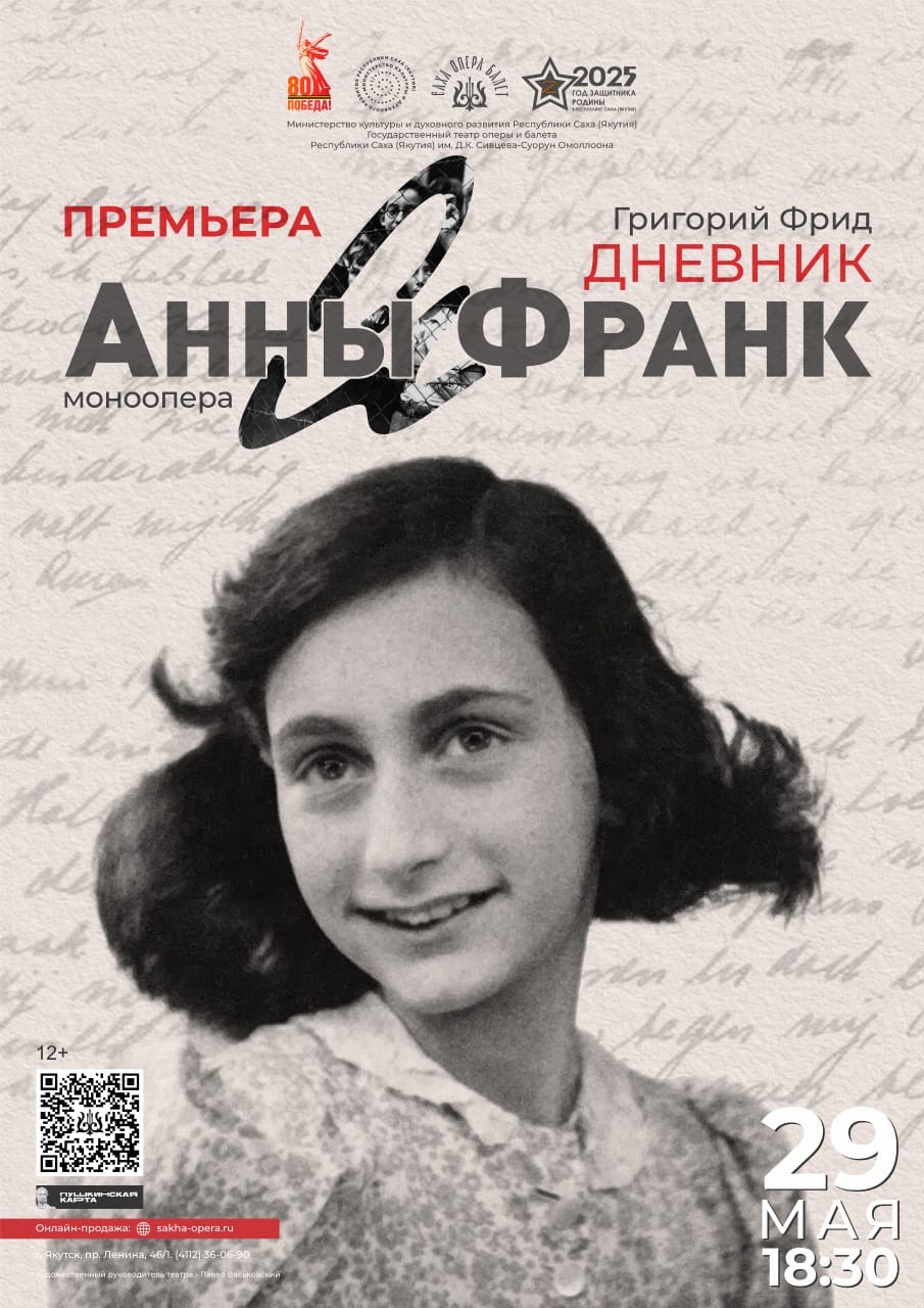 Солистка Государственного театра оперы и балета им. Д. К. Сивцева-Суоруна Омолоона Юлия Караченцева готовит для вас монооперу Григория Фрида «Дневник Анны Франк», которую представляет режиссёр Татьяна Саввинова.