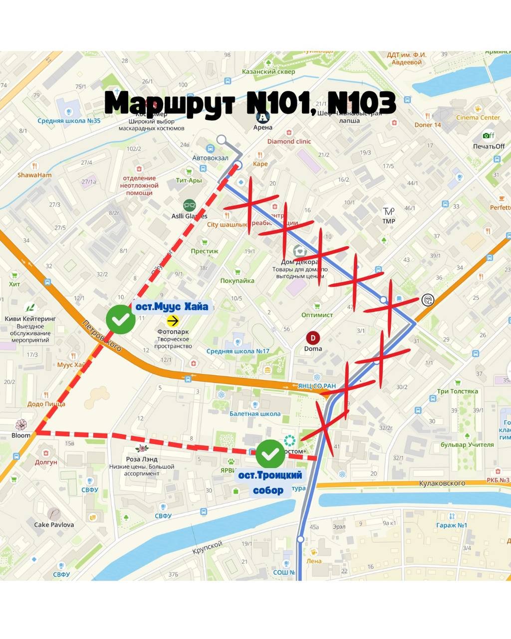Общественный транспорт будет следовать по временным схемам объезда (см. фото).