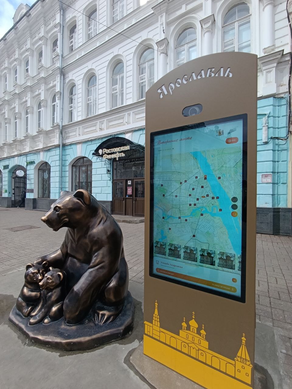 Хотя местные говорят, что в Ярославле кроме «Стрелки» (главная площадь) смотреть нечего, тут огромное обилие исторических памятников, красивейших храмов и просто оборудованных для отдыха мест. Тотем города — медведь, и рядом с забавными мишками расположены интерактивные информационные стенды, где можно ткнуть нужное место и тебе нарисуют маршрут. Кроме того, прямо на асфальте выбиты медвежьи следы, которые так или иначе выведут на «Стрелку» — место слияния рек Волги и Которосли.