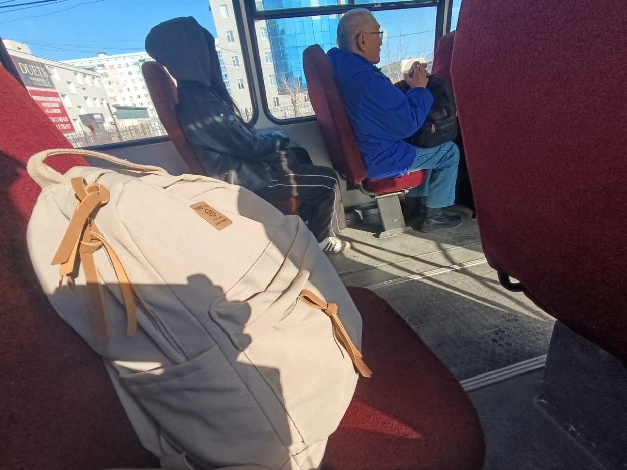 И вот, началось мое спонтанное путешествие с «4»-ки до аэропорта. В выходной день с утра народу мало, рюкзаку даже нашлось отдельное место).