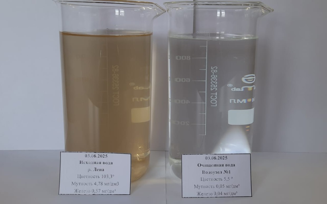 После очистки при подаче в город с водоузла №1: цветность — 5,5 град, мутность – 0,05 мг/дм3, железо — 0,04 мг/дм3.