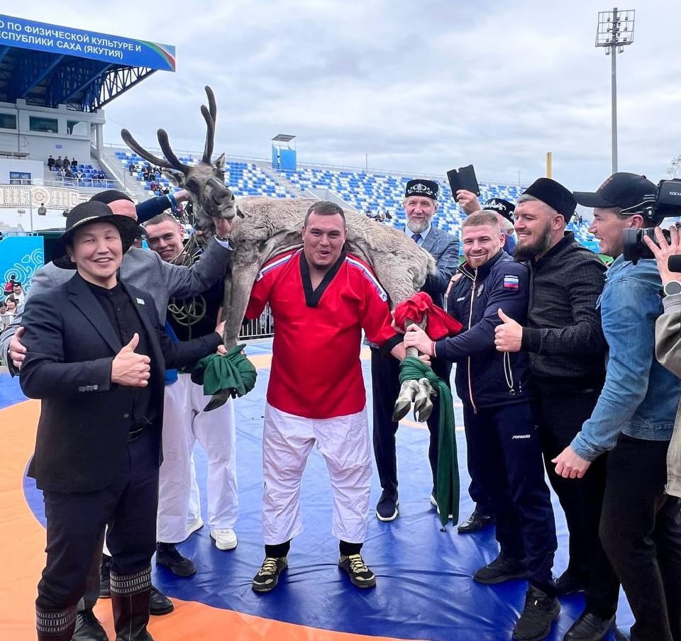 Министр по физической культуре Якутии и спорту Леонид Спиридонов вручил гостю из Татарстана живого северного оленя.