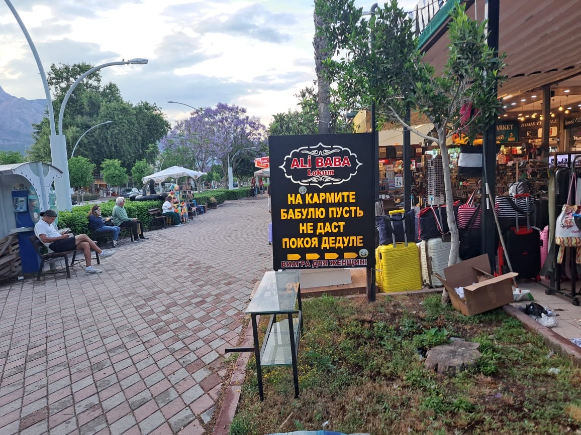 В Турции все заточено под россиян. Делюсь с вами рекламой турецких сладостей. Не подумайте плохого, это всего лишь реклама магазина "Али Баба", где продают бакалею и сладости.