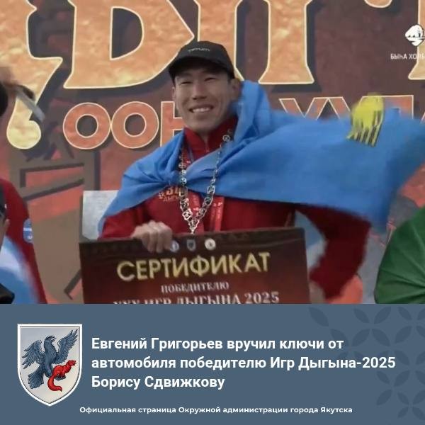 Глава Якутска вручил ключи от автомобиля победителю Игр Дыгына-2025 Борису Сдвижкову