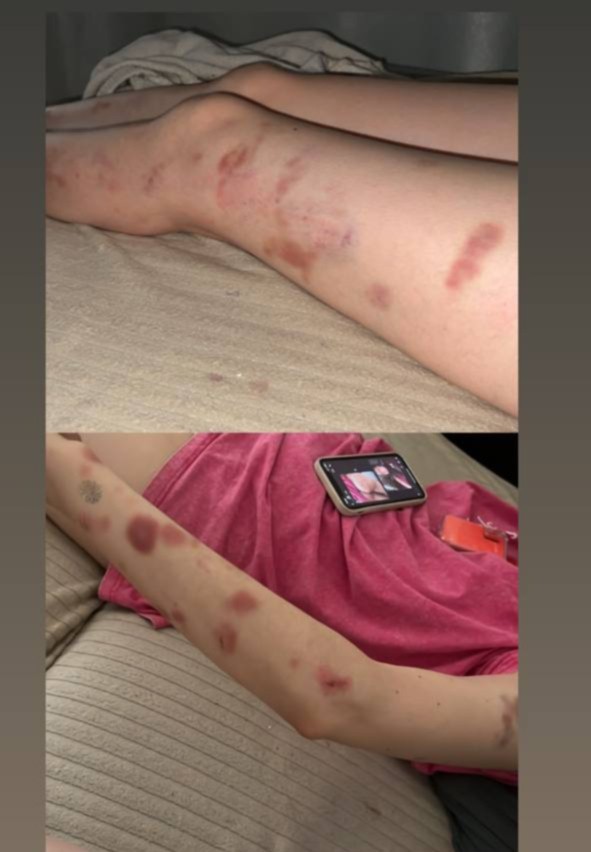 "Первое рукоприкладства было 13 декабря, он таскал меня за волосы и сильно схватил за руку и швырял по комнате. После чего извинился и сказал, что такого больше не повторится, я ему поверила и простила. Но он держал свое слово не долго, 21 февраля 2025 года все повторилось. Мы разошлись, но помирились через 4 дня", - рассказывает она.