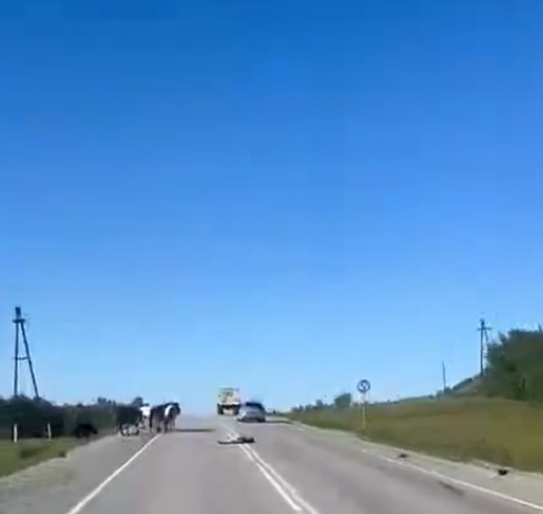 Вчера утром около 7ч.30м. водитель (1993 г.р.), управляя автомашиной марки «Хонда Фрид», двигаясь со стороны города Якутска в сторону города Покровск, совершил наезд на лошадей и скрылся с места ДТП. Кобыла и жеребенок скончались на месте.