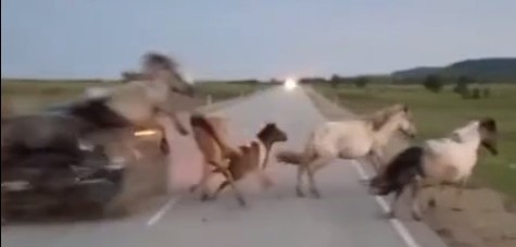 Коровы движутся медленнее, их объехать проще. А вот лошади непредсказуемы. Они появляются иногда прямо перед капотом, когда сделать уже ничего нельзя. Комментатор, советующий сдать права по-моему кроме дивана ничего в жизни не водил. А вот про "обезьяну с гранатой" точно! Особенно, если просмотреть видео первого наезда. Там лошадей было видно за полкилометра!