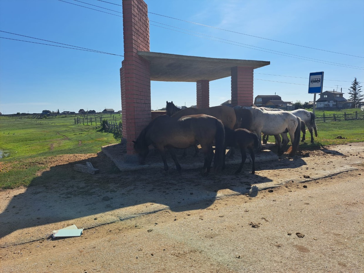 Корреспондент Sakhapress сегодня убедилась, что на Намской трассе лошади на свободном выгуле. Животные облюбовали остановки, они ждут автобус? Но это совсем не смешно, трасса может стать местом очередных ДТП с лошадьми, если не принять меры…
