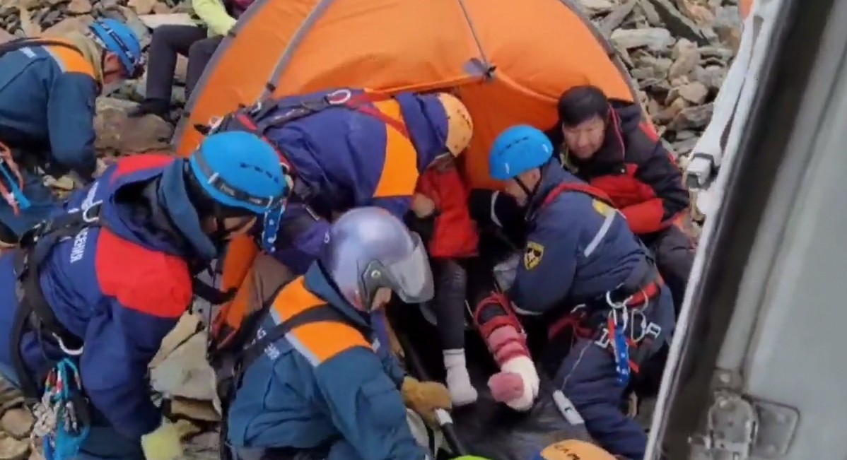 Sakhapress вчера сообщал о том, что в Якутии на леднике Кюретер (гора Победа) в Момском улусе пострадали туристки. Напомним, туристская группа из восьми человек поднималась на вершину (на связке по 4 человека). Одна из туристок сорвалась и потянула за собой других, в итоге двое повредили ногу, одна ударилась головой. Одну из пострадавших, повредившую голову и грудь, спустили другие туристы в базовый лагерь. Спасатели эвакуировали женщину до вертолета.
