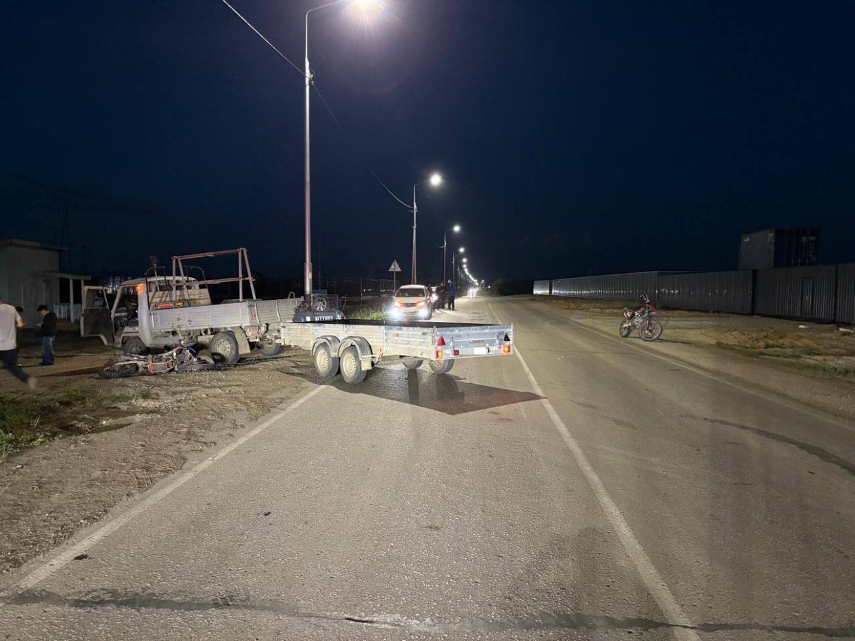 По предварительным данным было установлено, что 25 июля примерно в 00:17 часов 22-летний водитель автомобиля «УАЗ-330365» с прицепом, следуя со стороны город в сторону с. Хатассы, повернул налево вне перекрестка в нарушении требований дорожной разметки 1.1.