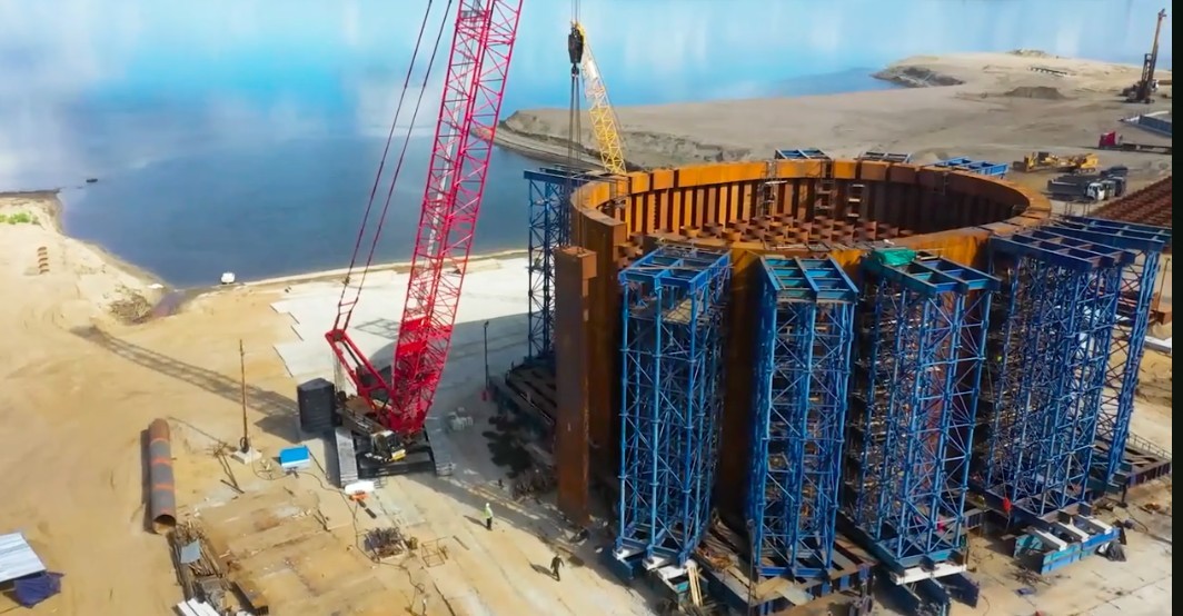 Это самая большая из трёх металлическая конструкция диаметром 46 м и высотой 17,32 м, её общий вес – почти 2835 тонн. Высота самого пилона, который будет сооружён с помощью коффердама, составит 284,5 м.