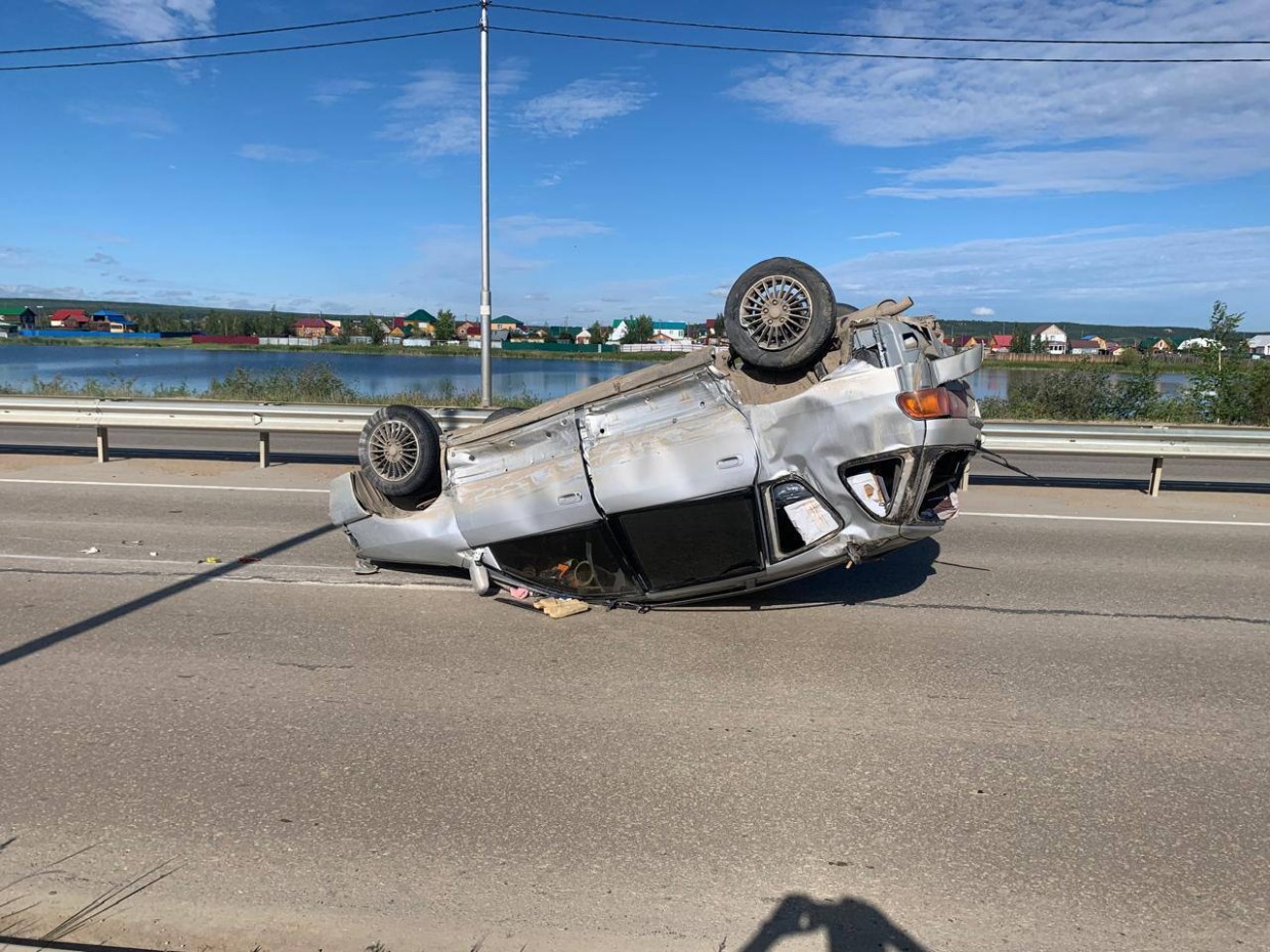 В Якутске в результате ДТП опрокинулся автомобиль, один человек пострадал