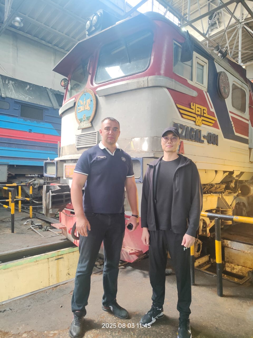 В ходе встречи представители АО «УБЖД» - начальник отдела по ремонту службы тяги Бямбадорж Бавуугарьд и заместитель начальника локомотивного депо по ремонту АО «УБЖД» Бямбажав Энхмэнд - ознакомили заместителя начальника локомотивной службы по ремонту АО «АК «ЖДЯ» Александра Чупрова с производственными цехами и технологией локомотивного депо в Улан-Баторе.