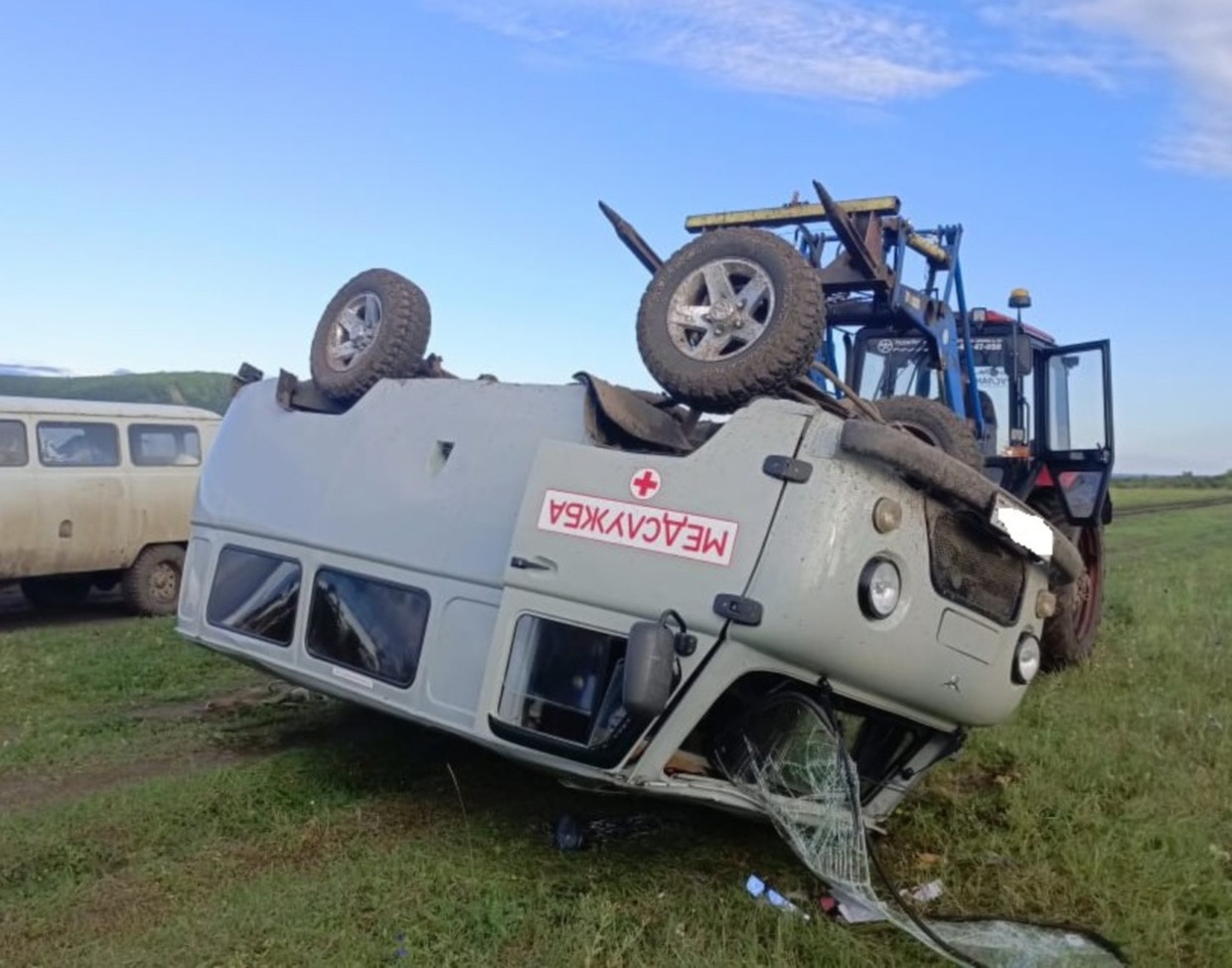 Предварительно установлено, что машина Скорой помощи на высокой скорости везла из села Мырыла тяжелобольного человека. Водитель не справился с управлением, автомобиль перевернулся.