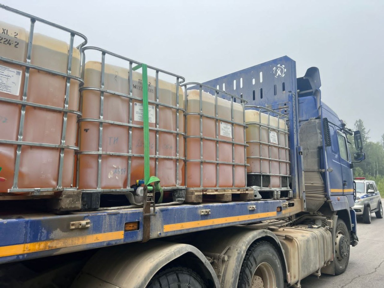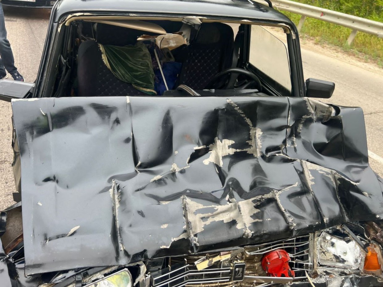 Предварительно установлено, что водитель 1985 г.р., управляя большегрузом МАЗ-643019, на повороте допустил выпадение перевозимого груза (емкостей объемом 1 куб. в количестве трех штук) на полосу встречного движения, в результате чего автомашина ВАЗ-2104, под управлением водителя 1969 г.р., совершил наезд на одну из емкостей.