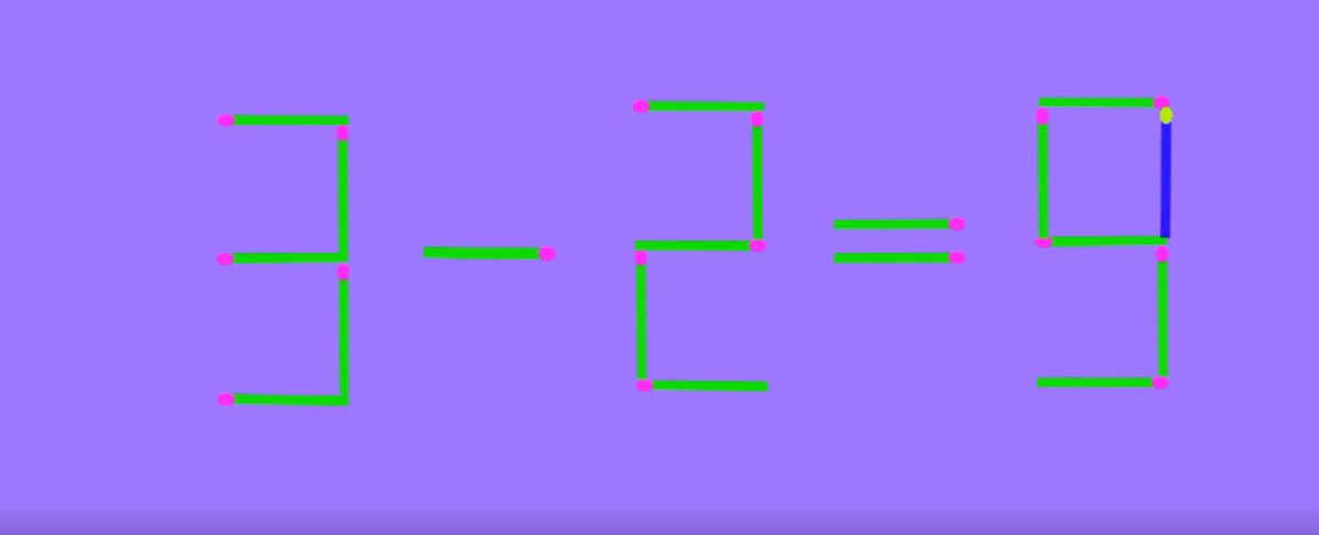 3-2=9, в ответе рисуете у 9 забрать спичку, и куда её?
