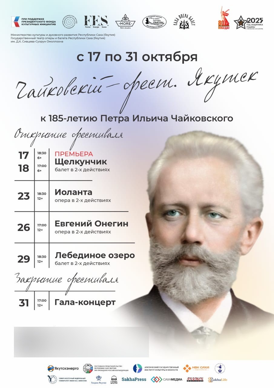 С 17 по 31 октября Государственный театр оперы и балета им. Д. К. Сивцева-Суоруна Омоллона проводит II Чайковский-фест к 185-летнему юбилею русского гения Петра Ильича Чайковского. Первый, напомним, был 33 года назад.
