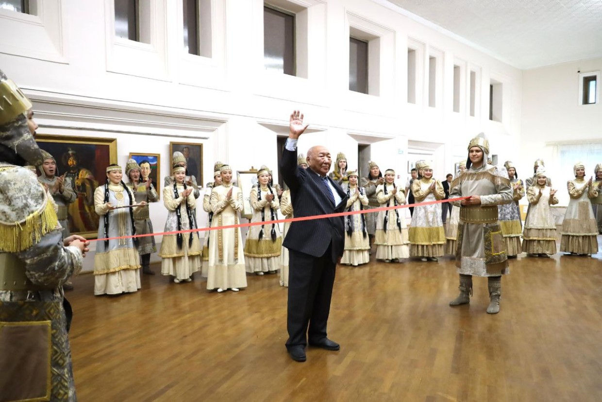 Приветствовали юбиляра замдиректора театра Игорь Эляков и многочисленный хор, одетый в нарядные костюмы народа из оперы «Ньургун Боотур», а заведующая оперной труппой театра Альбина Борисова сказала очень теплые сердечные слова и вручила Ивану Прокопьевичу огромный букет красных роз. И перерезал он красную ленточку тоже под громкие аплодисменты и всеобщее ликование своих дорогих коллег и зрителей, а потом все спешили запечатлеть себя с великим басом на память. Такой случай!