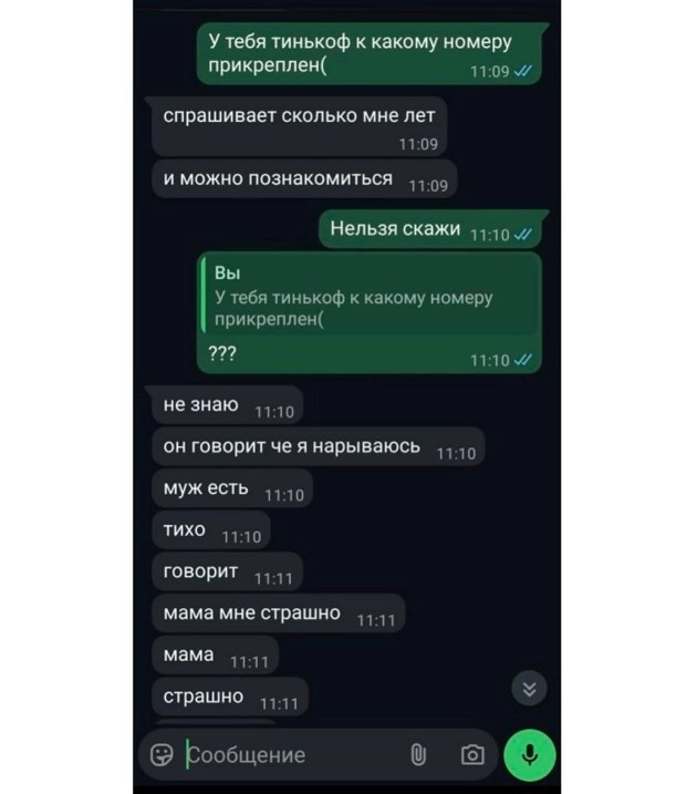 Ей пришлось дать номер (правда, недействительный), потому что сильно испугалась. При этом требовал отдать ему свой телефон, чтобы проверить, действительно ли она надиктовала ему реальный свой номер.