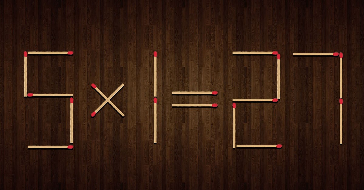 Sakhapress предлагает вашему вниманию довольно сложную головоломку со спичками. Для ее решения вам потребуется подключить всю свою сообразительность, пространственное воображение и логическое мышление. А суть этой задачи в том, чтобы исправить неверное равенство (5 x 1= 27) на правильное, переместив всего две спички.