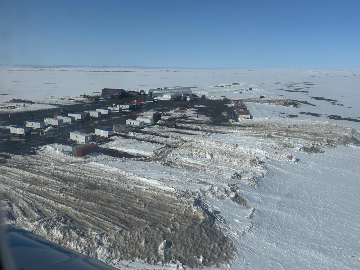 На геологической базе АО "Алмазы Анабара" на Таймыре ведется разгрузка судна с арктическим топливом