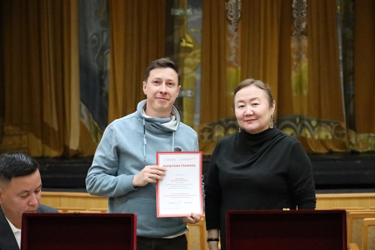 Почетной Грамотой МК и ДР РС(Я) удостоились художник-модельер театральных костюмов Валентина Афанасьева, артист хора Андрей Евстифеев, художник-гример Яна Лаптева, солистка Феодосия Шахурдина.