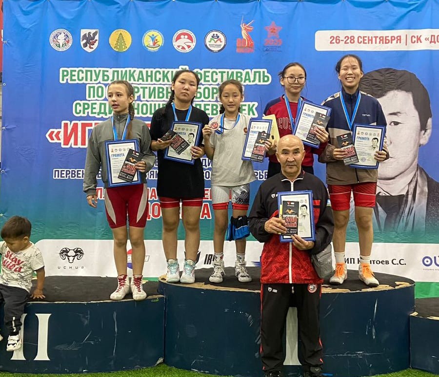 Вновь на верхнюю ступень пьедестала почета среди девушек до 17 лет поднялась победительница Спартакиады школьников Якутии, призер Всероссийского турнира в Бурятии по женской борьбе Ирина Пустовит из Якутска.