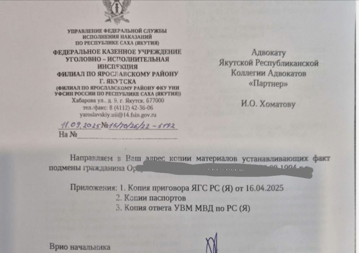 Настоящий Олег О., мой подзащитный, не судим, он только 2 сентября от сотрудников филиала по Ярославскому району г. Якутска ФКУ УИИ УФСИН России по РС (Я) узнал к своему удивлению, что он якобы судим. Кроме того, в период совершения преступления и суда его не было в Якутске, он находился в другом городе, что подтверждается авиабилетами и посадочными талонами. И поэтому он просто физически не мог совершить инкриминируемое ему преступление и участвовать в судебном процессе. Его персональные данные были использованы неустановленным лицом для получения паспорта и водительского удостоверения на его имя, но с фотографией другого человека. Это подтверждается имеющимися в нашем распоряжении документами и фотоматериалами. Поэтому я подал в суд соответствующее ходатайство с просьбой восстановить пропущенный срок на подачу апелляционной жалобы на приговор Якутского городского суда РС от 16.04.2025 г. по делу в отношении Олега О., отменить указанный приговор и возвратить уголовное дело в прокуратуру. Но 23 сентября суд вынес постановление об отказе в удовлетворении моего ходатайства. Конечно, мы с этим не согласны и подали апелляцию, - говорит Исроил Хотамов.
