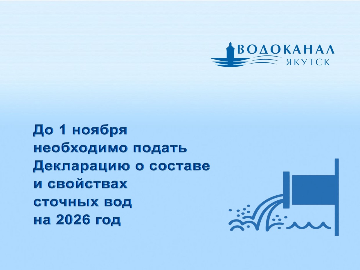 АО «Водоканал» напоминает, что до 1 ноября необходимо подать декларацию о составе и свойствах сточных вод на 2026 год.