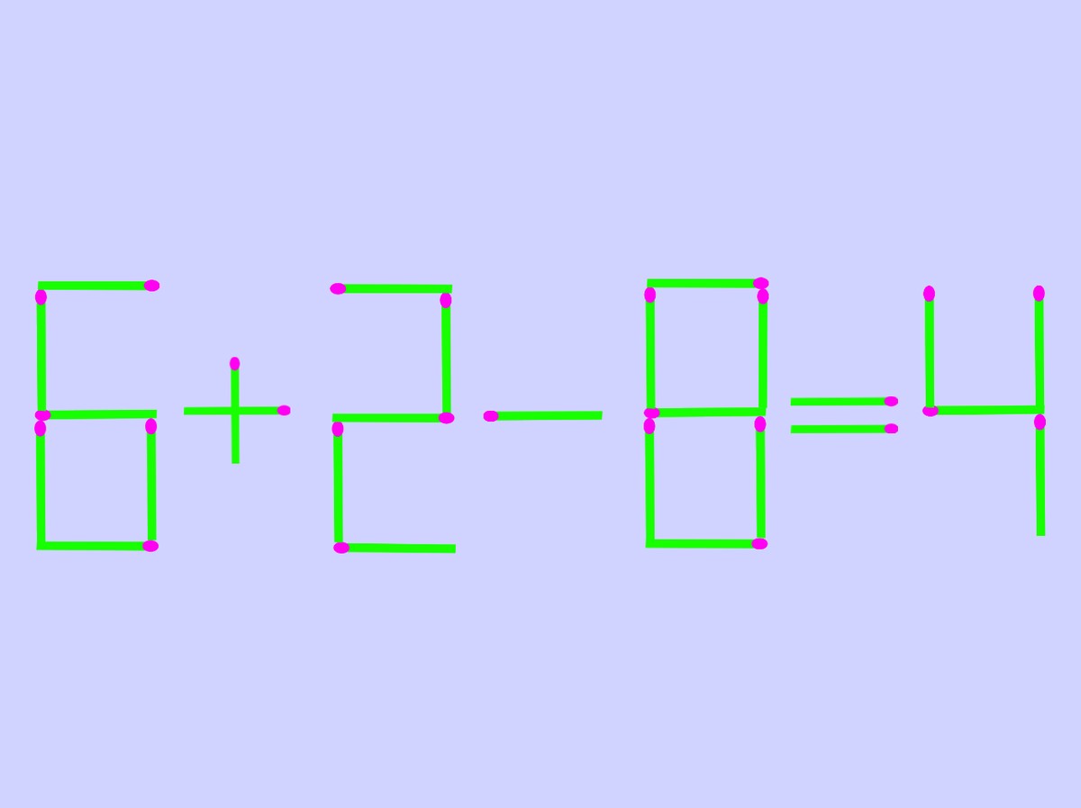 Условия простые: как и раньше в каждой задаче необходимо переместить ОДНУ спичку так, чтобы равенство стало верным.