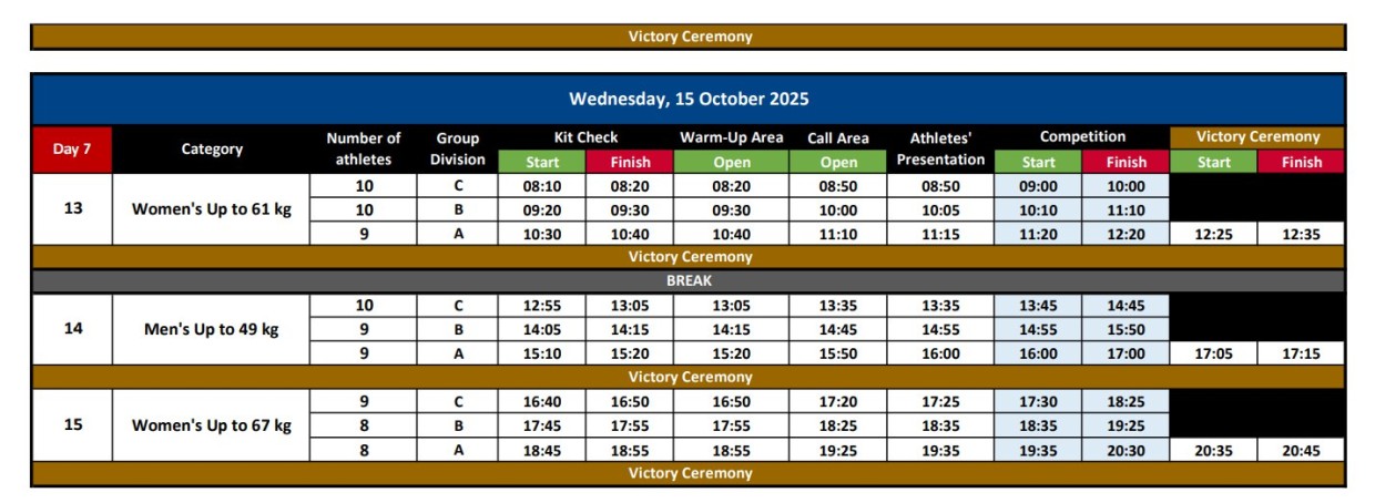 В этот день состоятся выступления спортсменов в трёх подгруппах (A, B и C). Соревнования начнутся в 19:45, а завершатся в 23:00, после чего в 23:05 состоится церемония награждения. (время указано якутское)