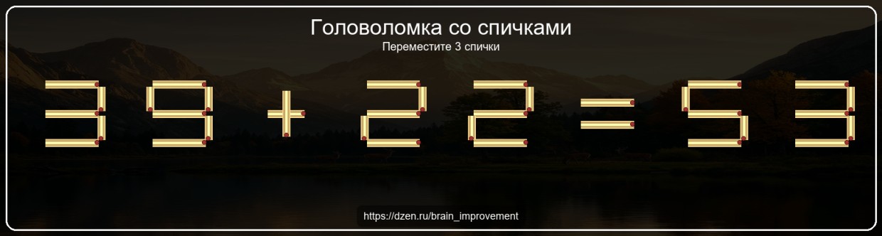 Условие задачи: переложите три спички, чтобы получить верное решение.