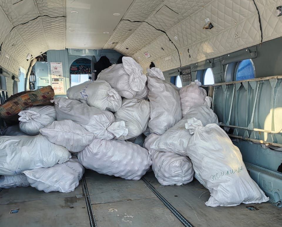 Из Якутска была доставлена одна тонна овощей (картофель, лук, капуста). Это уже второй рейс организованный АО "Алмазы Анабара" в удалённое арктическое село Жилинда. На этом рейсе из Оленька были доставлены для детей 100 кг фруктов от генерального директора АЛРОСА Павла Мариничева.
