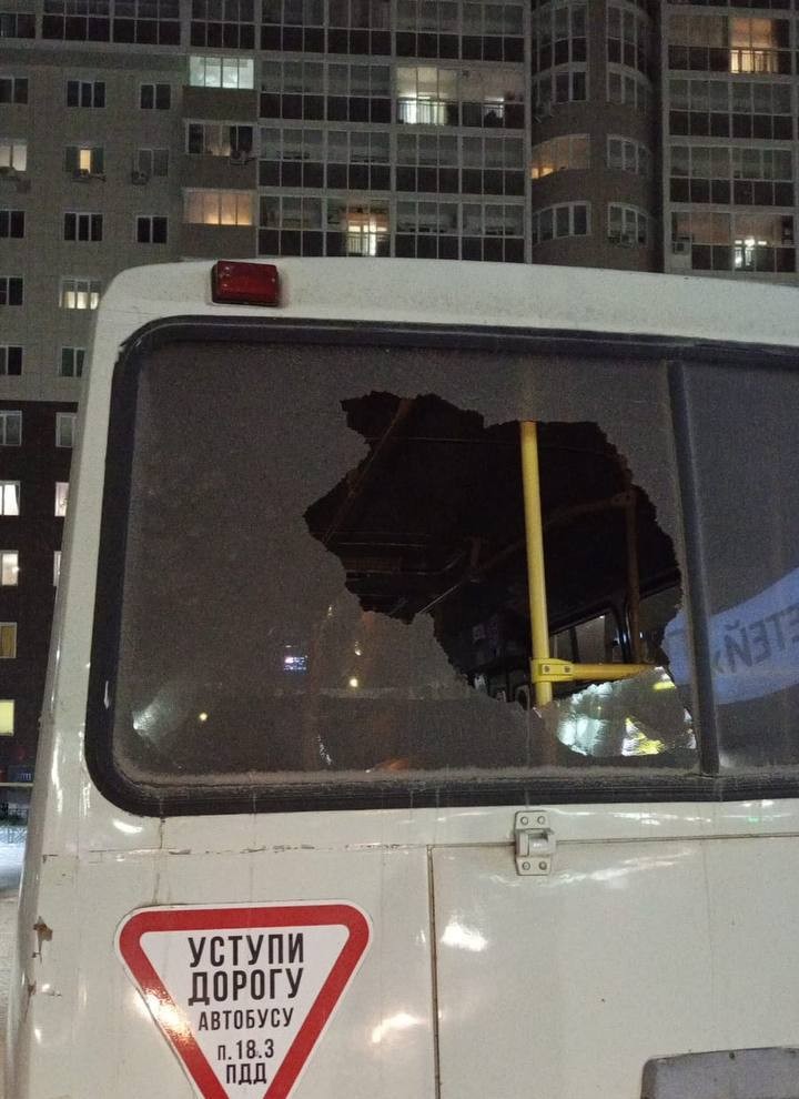 В Якутске неизвестный бросил камень в заднее стекло маршрутного автобуса, в котором находились пассажиры