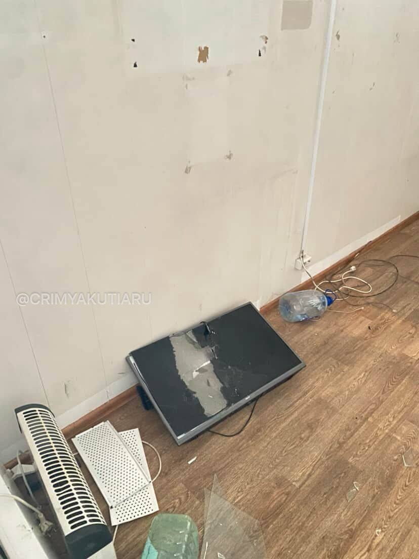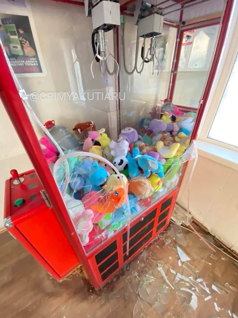 Судя по фото, сломали буквально все: стекла, двери, электротабло. Не пощадили даже автомат с мягкими игрушками.